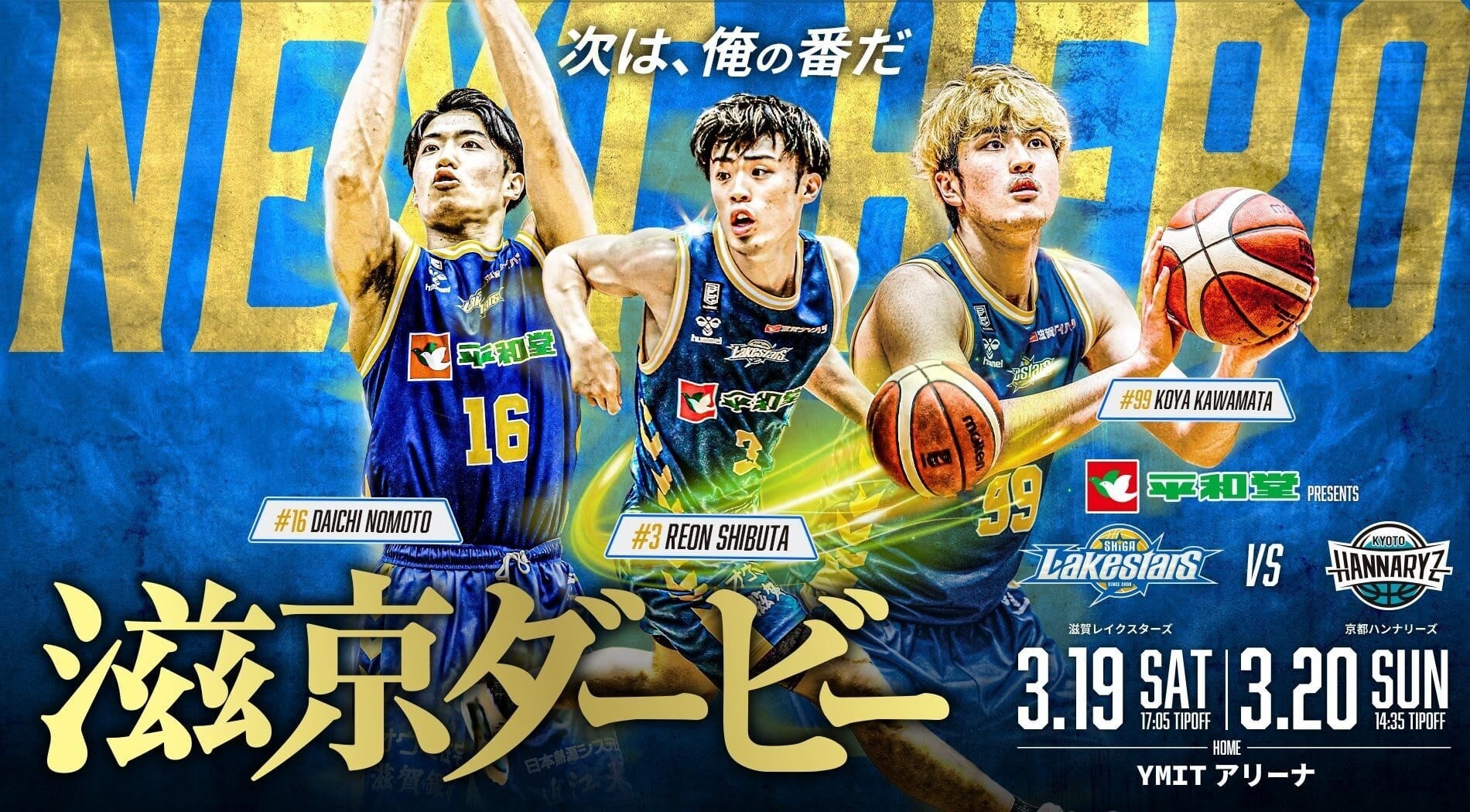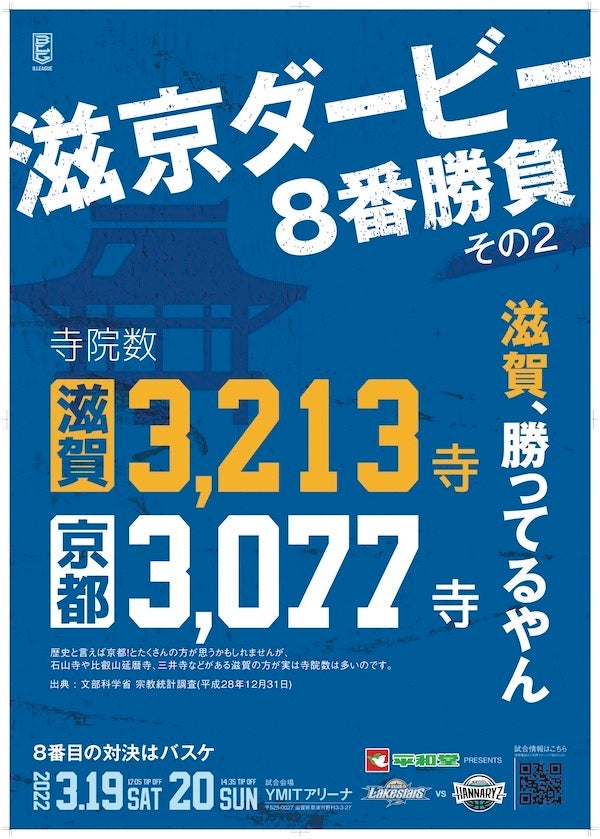 滋賀レイクスターズでは、3月19日(土)20日(日)に滋賀県草津市のYMITアリーナで開催するホームゲーム「第25節 平和堂presents 滋京ダービー vs京都ハンナリーズ」を、今季も特製PRポスターを用意して盛り上げます。