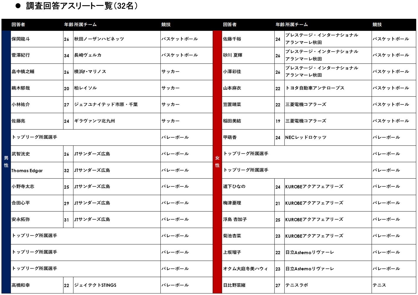 2.アスリート(Google フォームを用いた 個別集計|32名)