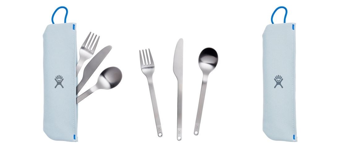 Hydro Flaskより、待望のフラットウェアセットが登場!いつものアウトドア時間をグッと格上げしてくれる、耐久性に優れた18/8プログレード・ステンレススチール製。耐久性と耐腐食性に優れ、お手入れも非常に簡単です。キャンプや裏庭、ベランダでのアウトドアダイニングに是非!