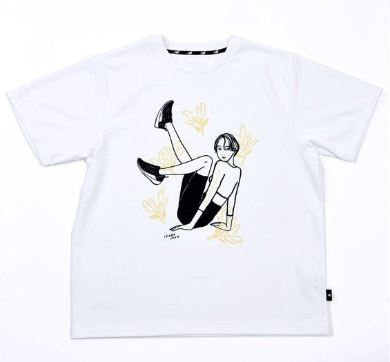 イラストレーターitabamoe氏によるに描き下ろしのグラフィックによるTシャツは、トレンド感のあるビッグシルエットで、コットンライクな素材感ながら高い吸水速乾性を誇る機能素材で、ランニングでも快適に着られます。