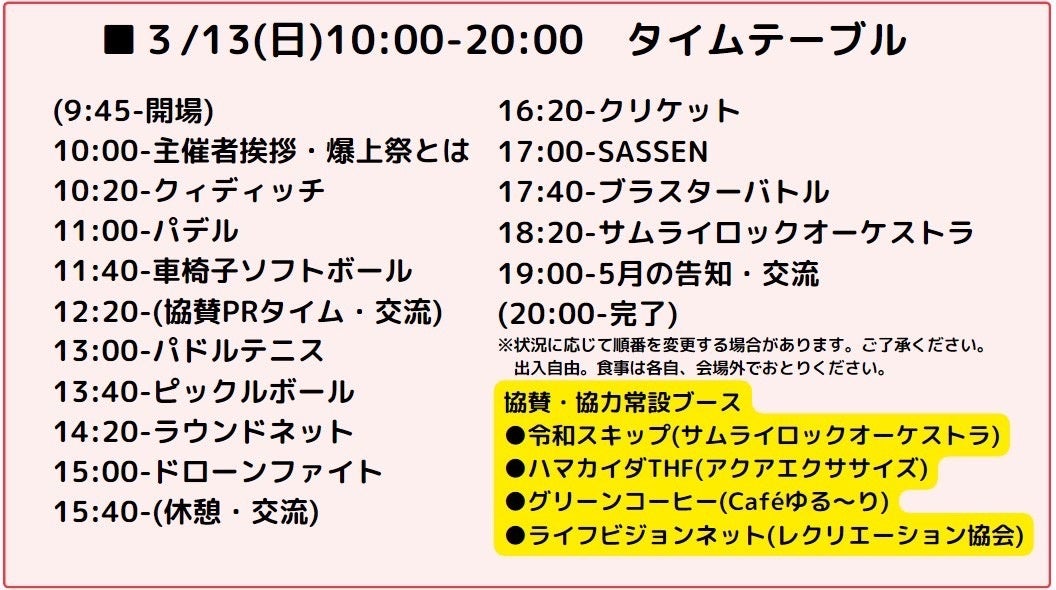 ●3/13(日)10:00-20:00 秋葉原 アキバチャレンジ体験会