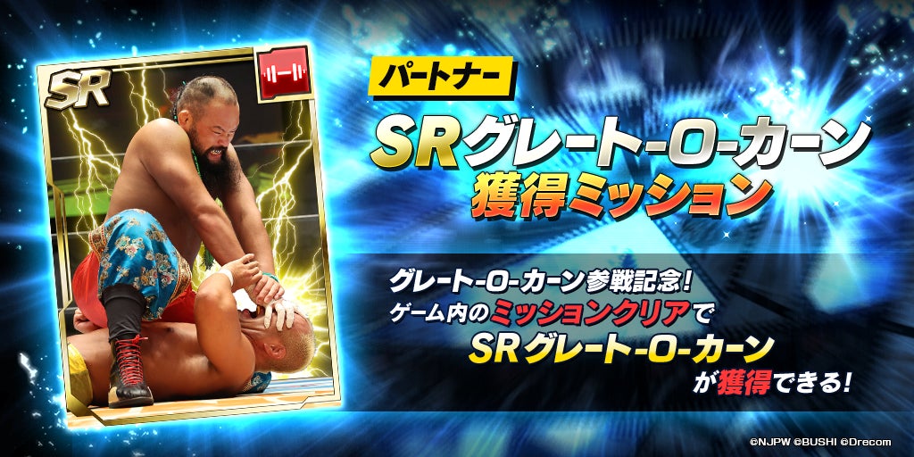 株式会社ブシロード(本社:東京都中野区、代表取締役社長:橋本義賢)は、株式会社ドリコム(本社:東京都品川区、代表取締役社長:内藤 裕紀)と共同開発しているスマートフォンゲームアプリ『新日本プロレスSTRONG SPIRITS』(以下、新日SS)に、グレート-O-カーン選手が参戦した事をお知らせいたします。ぜひ貴社媒体にてお取り扱い頂きますよう何卒よろしくお願い申し上げます。