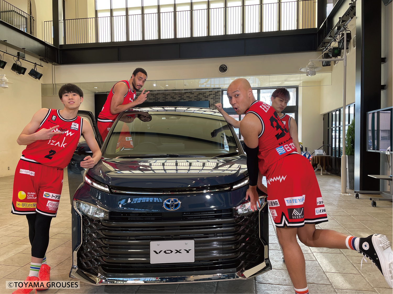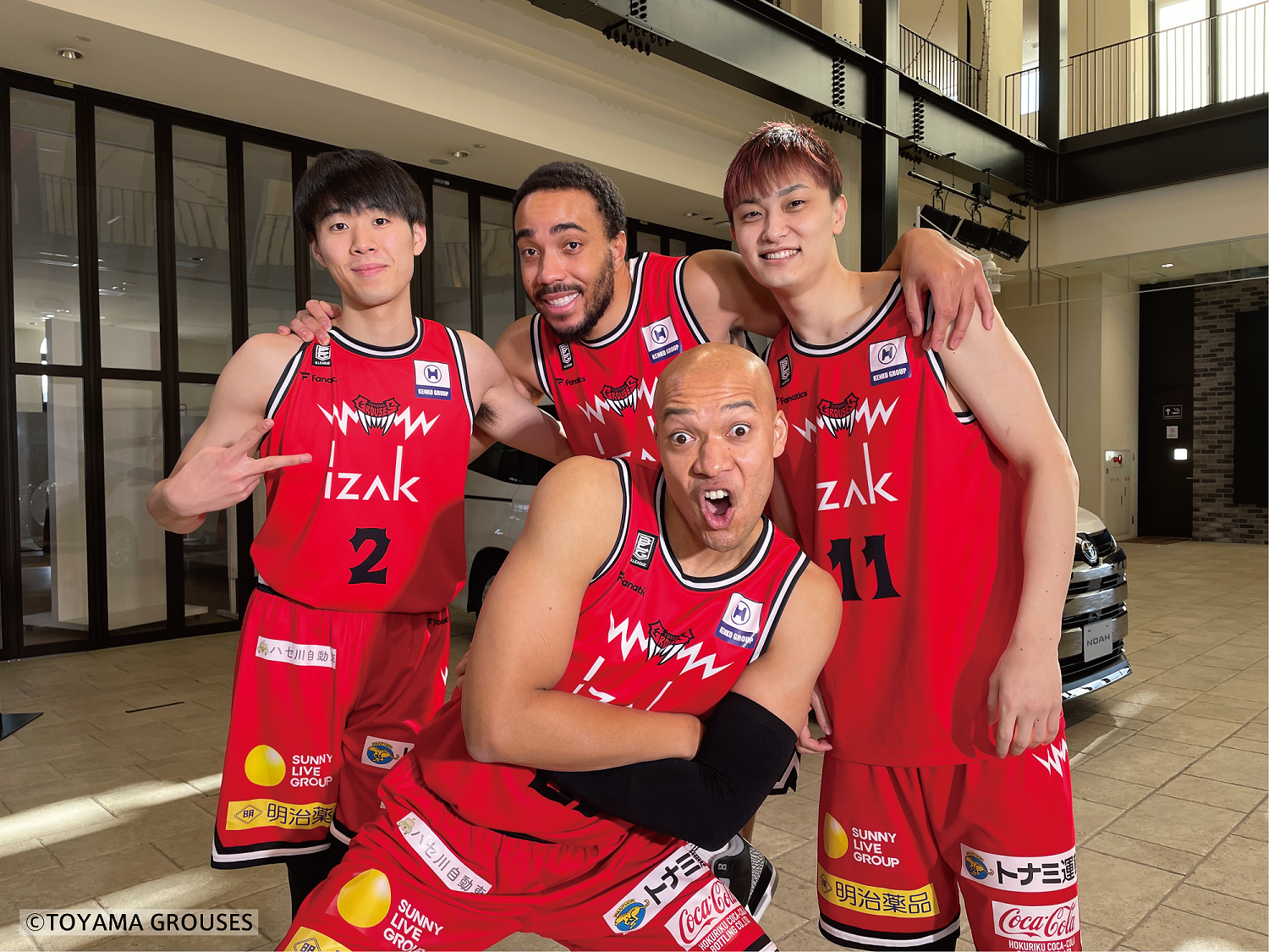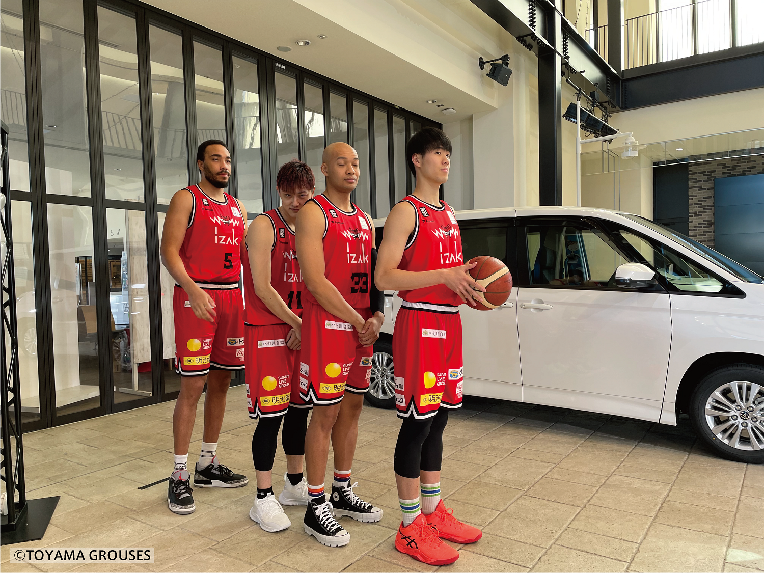 撮影は、ネッツトヨタ富山 本店(富山市新庄本町3-3-33)にて実施。富山グラウジーズの、飴谷由毅選手、ブライス・ジョンソン選手、宇都直輝選手、晴山ケビン選手が参加。