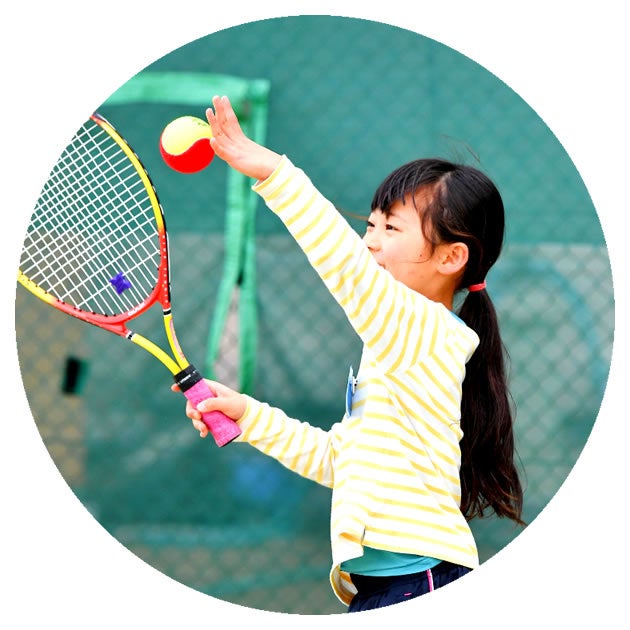 テニスは、走る、跳ぶ、止まる、ひねるといった、様々な競技にも通じる基本的な運動技能を養うことができるスポーツです。
