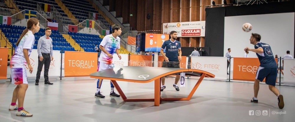 湾曲したテーブル上で、サッカーボールをリフティングしたりヘディングしたりして、相手コートへ向かって打ち合い得点を競う、いわば「サッカー」と「卓球」を組み合わせたスポーツです。