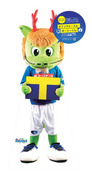 ブックエース6店舗、川又書店2店舗にいるホーリーくんパネルを撮影して、Twitterで、『#ブックエースとホーリーくん』をつけてツイートすると3月26日(土)の水戸ホーリーホック対ロアッソ熊本戦のチケットが当たります!
