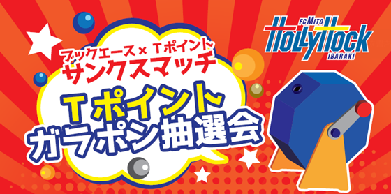 株式会社Tポイント・ジャパン(本社:東京都渋谷区、代表取締役社長:北村和彦 以下、Tポイント・ジャパン)と、株式会社フットボールクラブ水戸ホーリーホック(本社:茨城県水戸市、代表取締役社長:小島耕 以下、水戸ホーリーホック)、株式会社ブックエース(本社:茨城県水戸市、代表取締役社長:奥野康作 以下、ブックエース)、は、3月26日(土)に、ケーズデンキスタジアム水戸にて「ブックエース×Tポイント サンクスマッチ」を開催いたします。