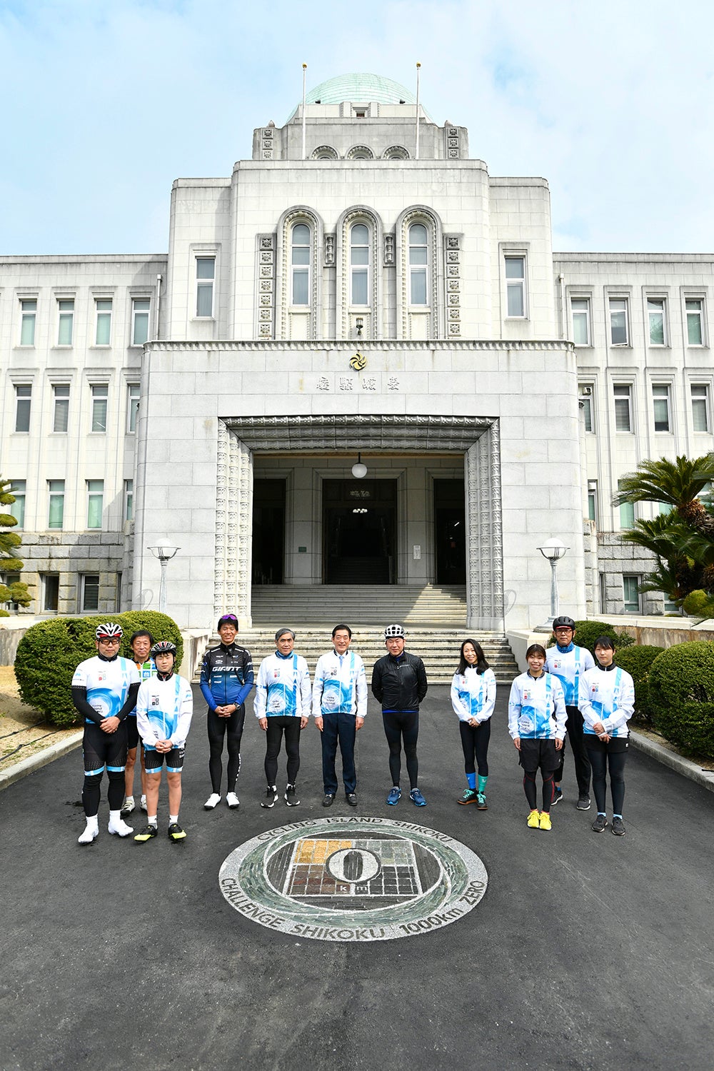 台湾との交流や四国4県での連携を推進し「サイクリングアイランド四国」の実現を目指して、先進的な取り組みを行ってきた愛媛県を“四国一周サイクリング誕生の地”として、愛媛県庁(愛媛県松山市)に「四国一周0km(ゼロキロ)モニュメント」を設置しました。