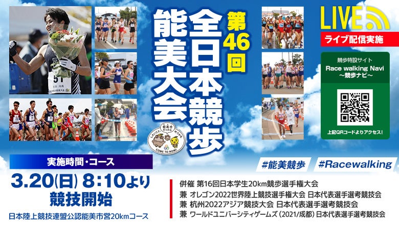 2022年3月20日(日)、「第46回全日本競歩能美大会」をライブ配信!