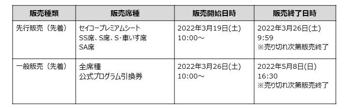 ・指定席は1席ずつ間隔を空けた座席の販売を実施させていただきます。複数枚ご購入のお客様も、お連れ様と隣り合わせではご着席できませんのでご了承ください。エリア指定席も、1席以上間隔を空けてのご観戦をお願いいたします。 (自治体の判断により制限が緩和された場合は除く。 )
