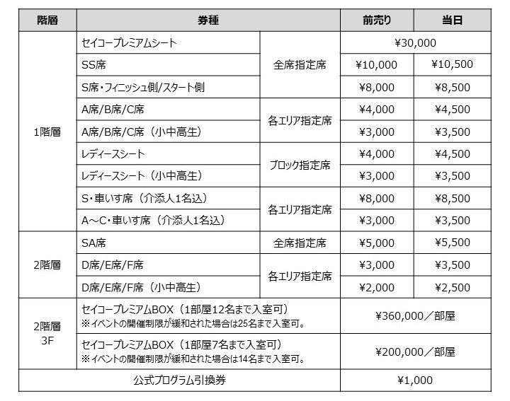 ※セイコープレミアムBOXをご購入のお客様には、引換券を1枚発券いたします。大会当日に引換券をご持参のうえ、引換券に記載の指定の場所にて、定員分のチケットとお引き換えください。