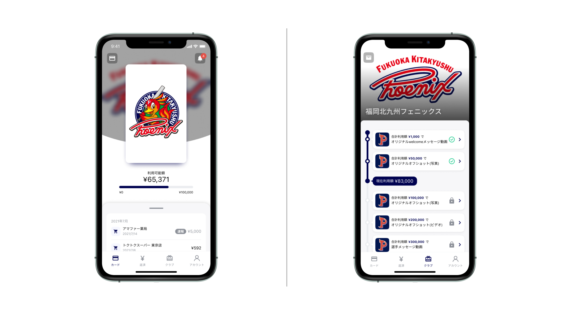 「福岡北九州フェニックス」クラブユーザー様は、普段のお買い物などでNudgeカードをご利用いただくだけで、福岡北九州フェニックスの応援ができます。さらに、Nudgeカードのご利用金額に応じて、限定のオフショットや、選手がファンのご質問に回答するメッセージ動画、試合のチケット等、チームの限定特典がもらえます。