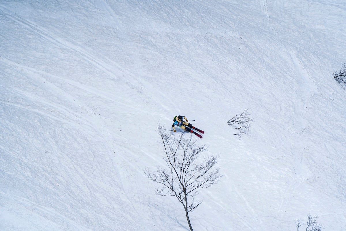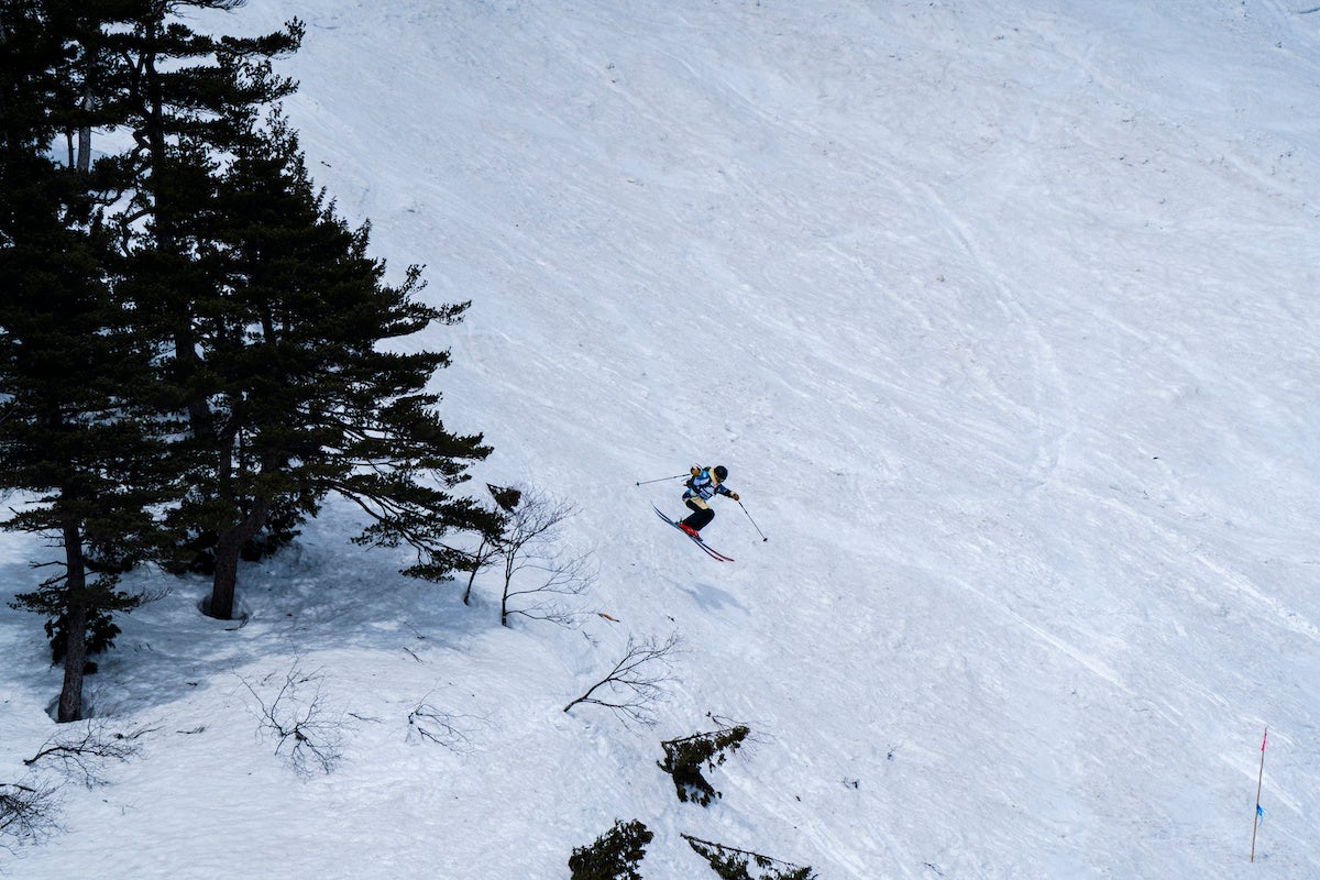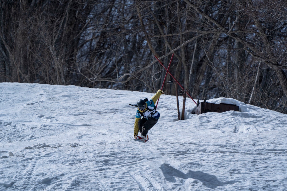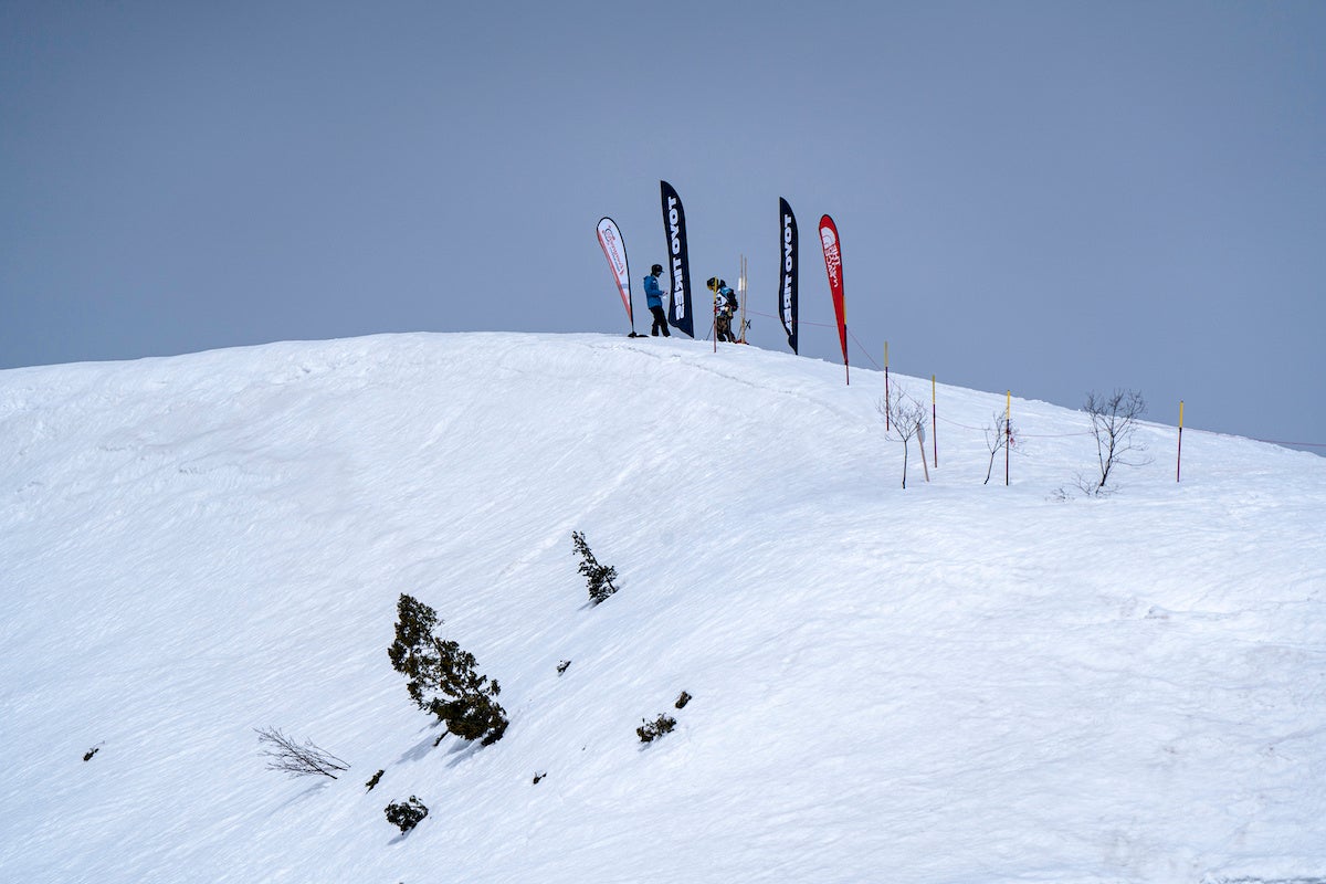 大会斜面は、白馬八方尾根スキー場内のフリーライディングエリア(非圧雪エリア)を「第1セクション:ウラクロ」「第2セクション:おむすび」「第3セクション:国際ゲレンデ」と3つのセクションに分け、順番に滑り各セクションでの平均点で順位を決定しました。3つのセクションはすべてスキー場内最高難易度の超上級者コースで、スタートからゴール地点までは800mの標高差があります。白馬大会始まって以来最大の積雪量に恵まれた今シーズンでしたが、大会日前後の数日で一気に春の陽気となり、急速に溶けてゆく重たく湿った雪面を長距離に渡って滑走するという非常に難しいコンペティションに。初めてのコンディションに苦戦する姿も見られましたが、日本トップクラスの選手たちの熱い健闘が見られました。