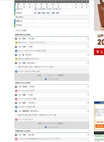 また、イニング情報を確認することで得点シーンや失点シーンの振り返りも行えて便利です。日程表に戻れば、過去の試合もご覧いただけます。見逃した試合のチェックや、1軍に昇格した選手の2軍での活躍を確認すれば楽しさも倍増します。