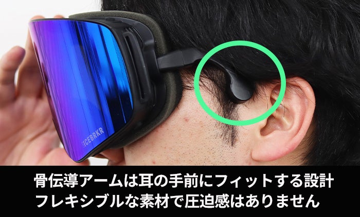 22/23シーズンに新たに登場する最新モデルが「bONE IceBRKR 2.0」です。2022/23シーズンからは、【bONE】 IceBRKR2.0に進化。IceBRKR2.0は新たにハイコントラストレンズを搭載、音質を向上させる新形状の骨伝導アームを採用、前モデルに比べバッテリー性能も25%UPしました。