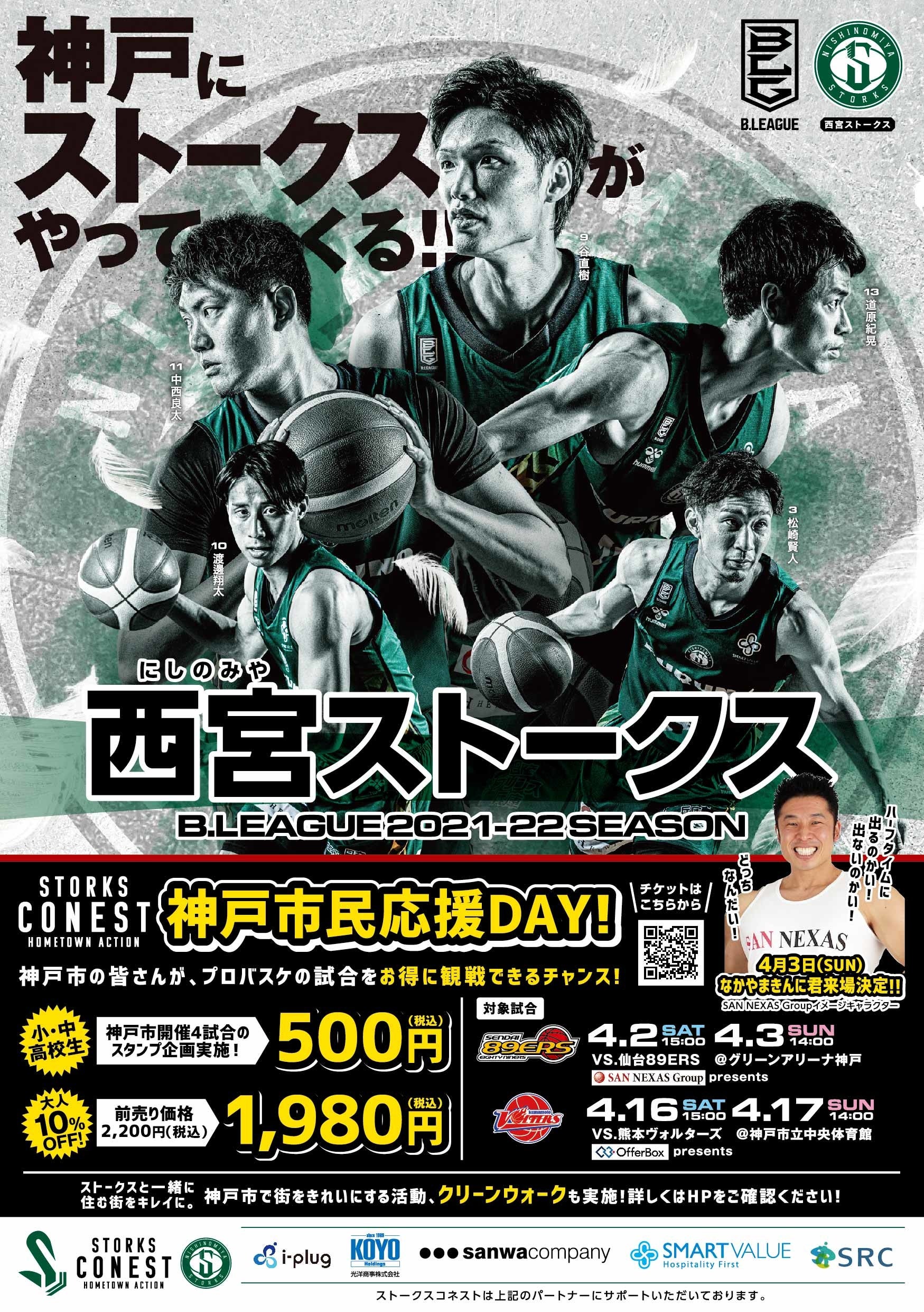 Bリーグ2部に所属する、西宮ストークス(兵庫県西宮市)は、4月2日(土)、3日(日)、16日(土)、17日(日)の4試合のホームゲームチケットを本日から一般販売いたします。