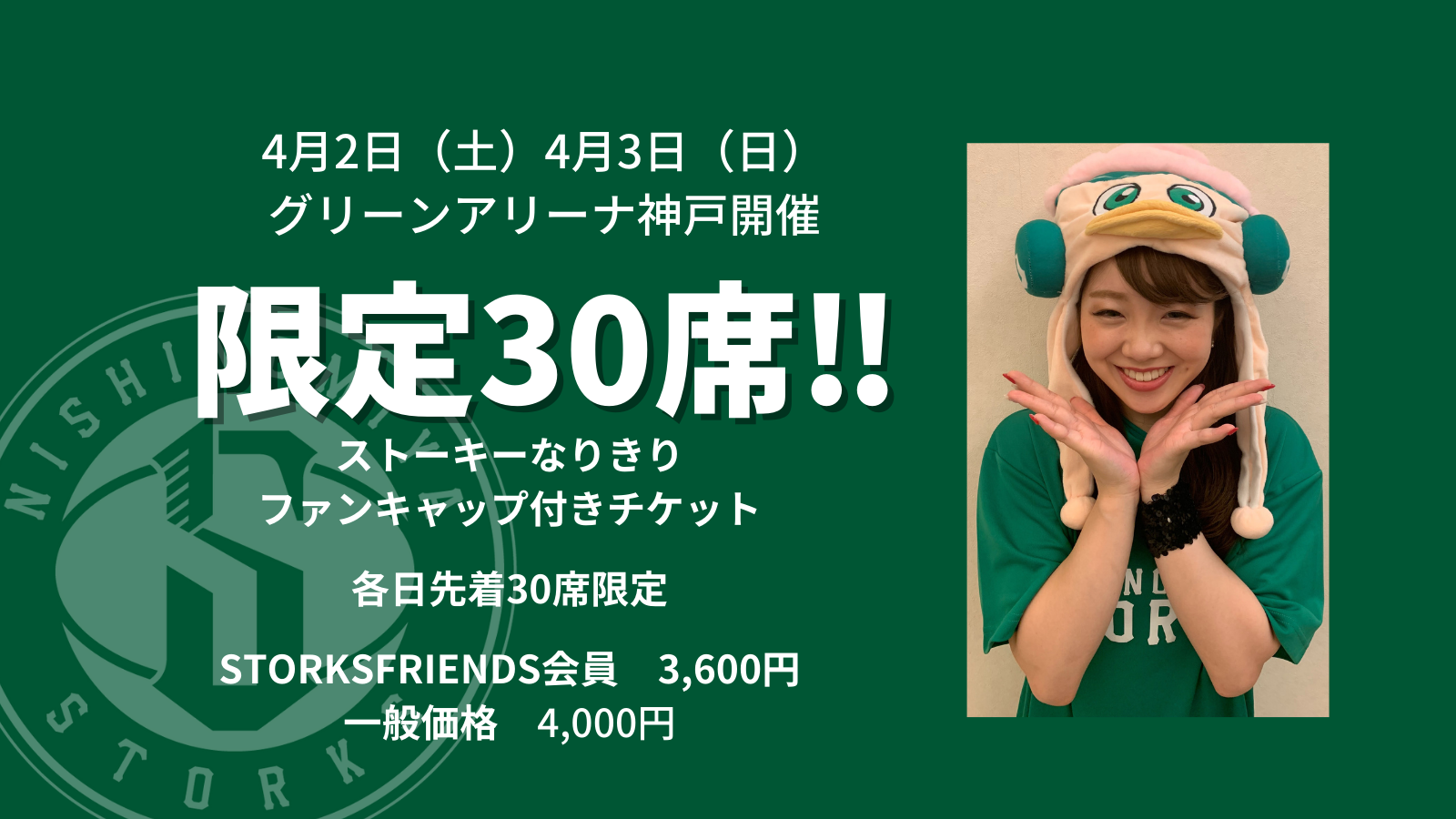 各日30席限定で西宮ストークスオリジナルグッズ「ストーキーなりきりファンキャップ付きチケット」を販売します。