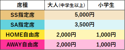 ※小学生自由席のチケットでのSS席、SA席はご入場できません。