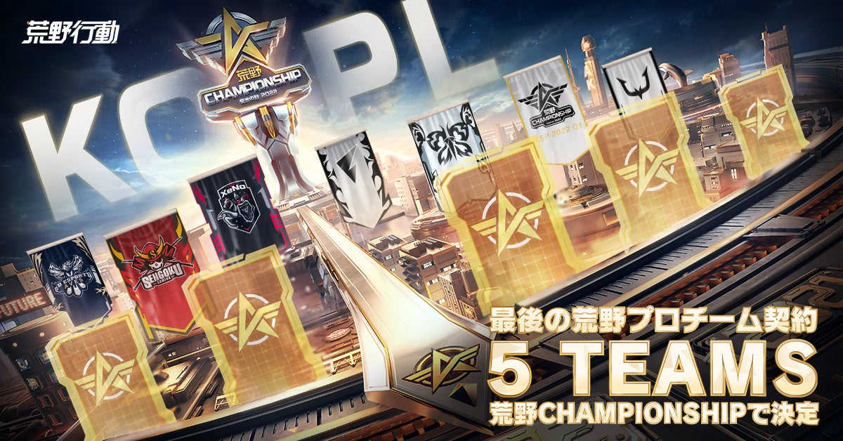 2021年度から始まったプロチーム制度の続き、2022年では全プロチームしか参加できない荒野プロリーグ – 「KOPL(KNVES OUT PRO LEAGUE)」も遂に発表されました!合計12プロチームが参加可能で、「αd Aves」、「Flora」、「XeNo」、「Sengoku Gaming」、「REJECT」、「FENNEL Hornet」、そして2022年KSPシステムより選ばれた1チーム除き、最後のプロチーム枠五つは今年の荒野CHAMPIONSHIPで選抜されます!