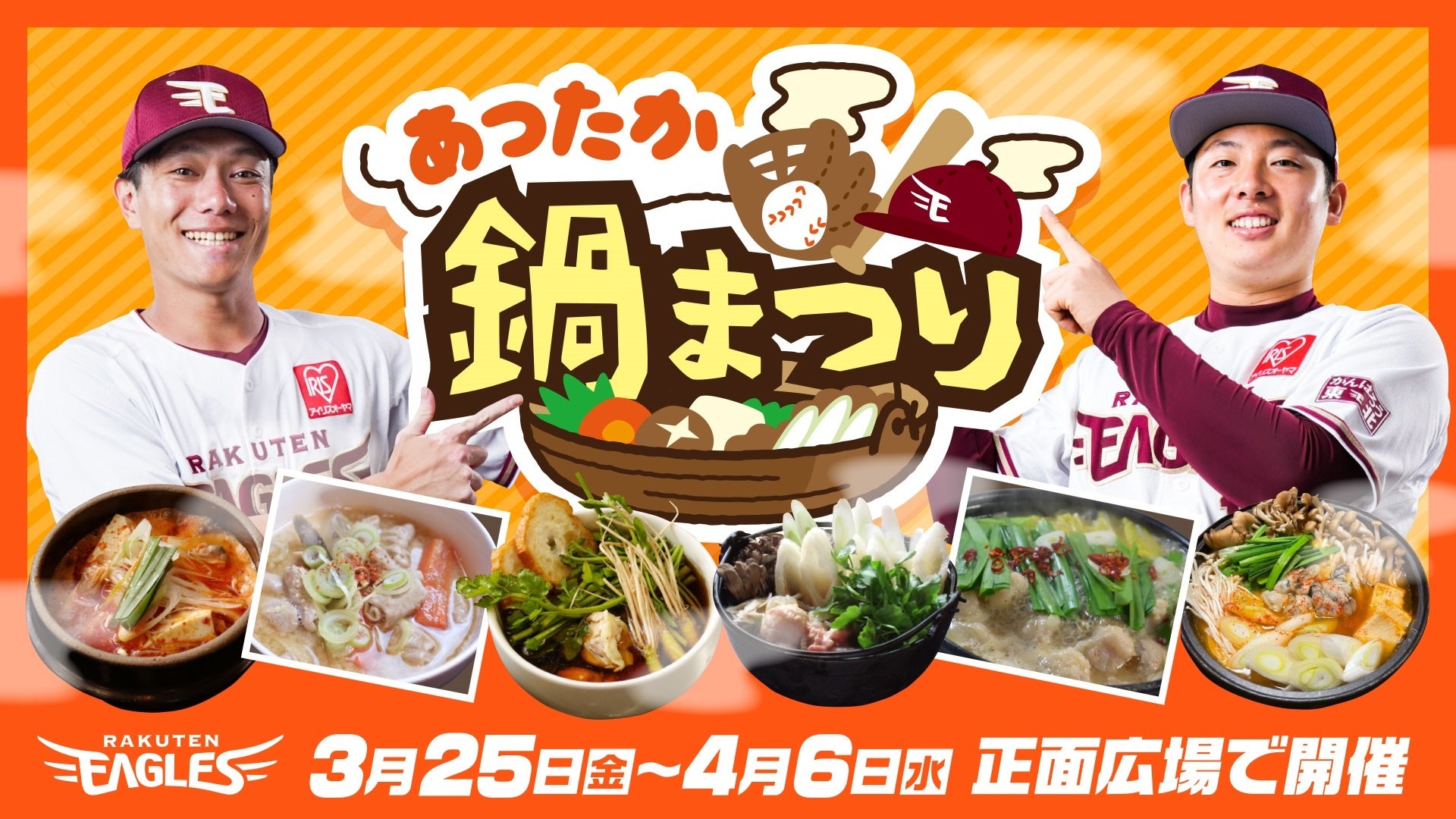 株式会社楽天野球団(本社:宮城県仙台市宮城野区、代表取締役社長:米田 陽介)は、楽天生命パーク宮城において、「あったか鍋まつり」を開催することとなりましたので、お知らせいたします。