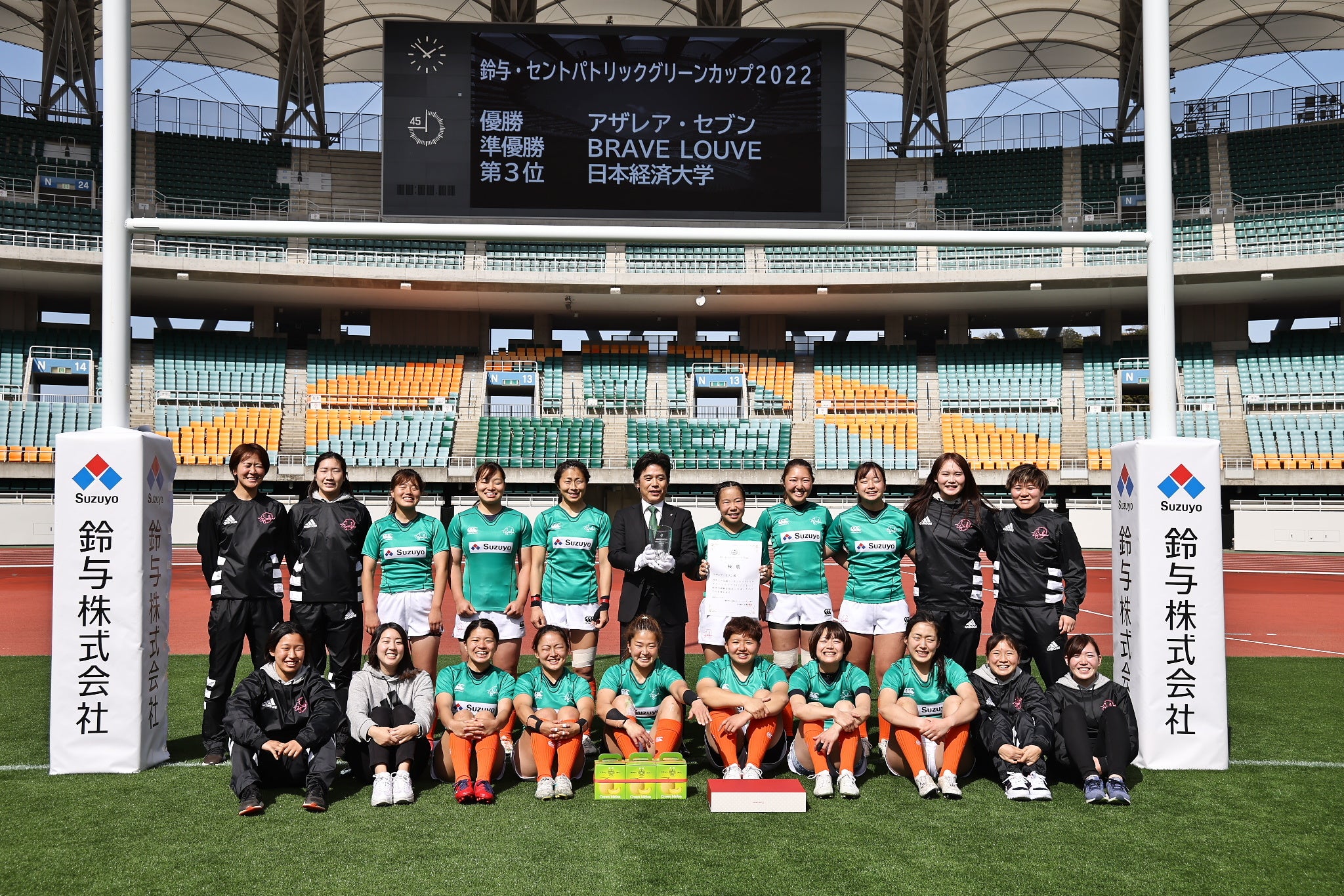 当社社員である山本選手が所属するアザレア・セブンは、暫定2位として20日(日)の試合を迎えましたが、決勝戦では24―15と前日の雪辱を果たして優勝。山本選手はスタメンとしてチームの勝利に貢献しました。優勝したアザレア・セブンには、カヴァナ アイルランド駐日大使から優勝カップが、川勝知事からが贈られました。