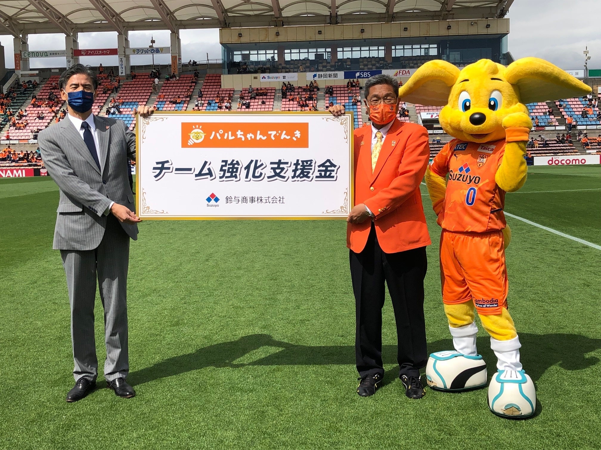 鈴与商事株式会社(本社:静岡県静岡市清水区入船町11-1/本部:静岡県静岡市葵区栄町1-3 鈴与静岡ビル/資本金:20億円/代表取締役社長:加藤 正博、以下、鈴与商事)は、2022年3月19日(土)に開催されましたJリーグ公式戦(清水エスパルスvsヴィッセル神戸:IAIスタジアム日本平)の試合開始前に、「パルちゃんでんき」のチーム強化支援金贈呈式を執り行いましたことをお知らせ致します。