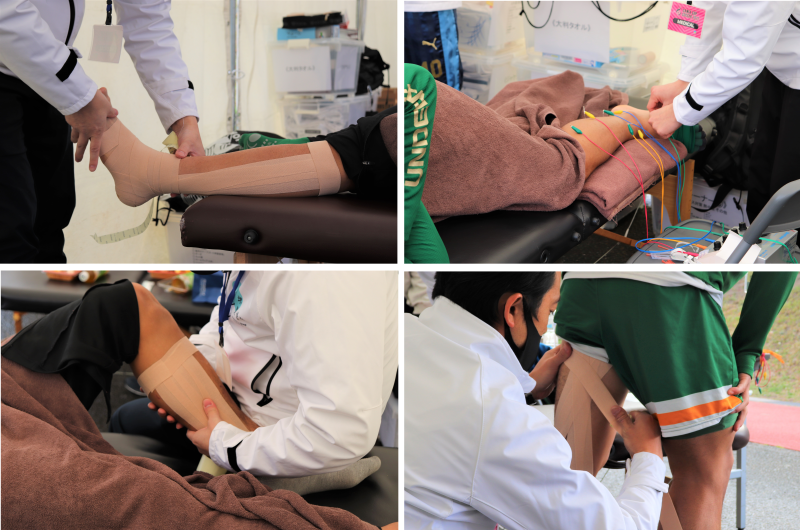 試合後も、ケガをした選手のアフターケアや、疲労が残らない様に、施術を行っていました。また、ケガをしない身体の作り方や、自宅でも出来るストレッチなどアドバイスも行っていました。