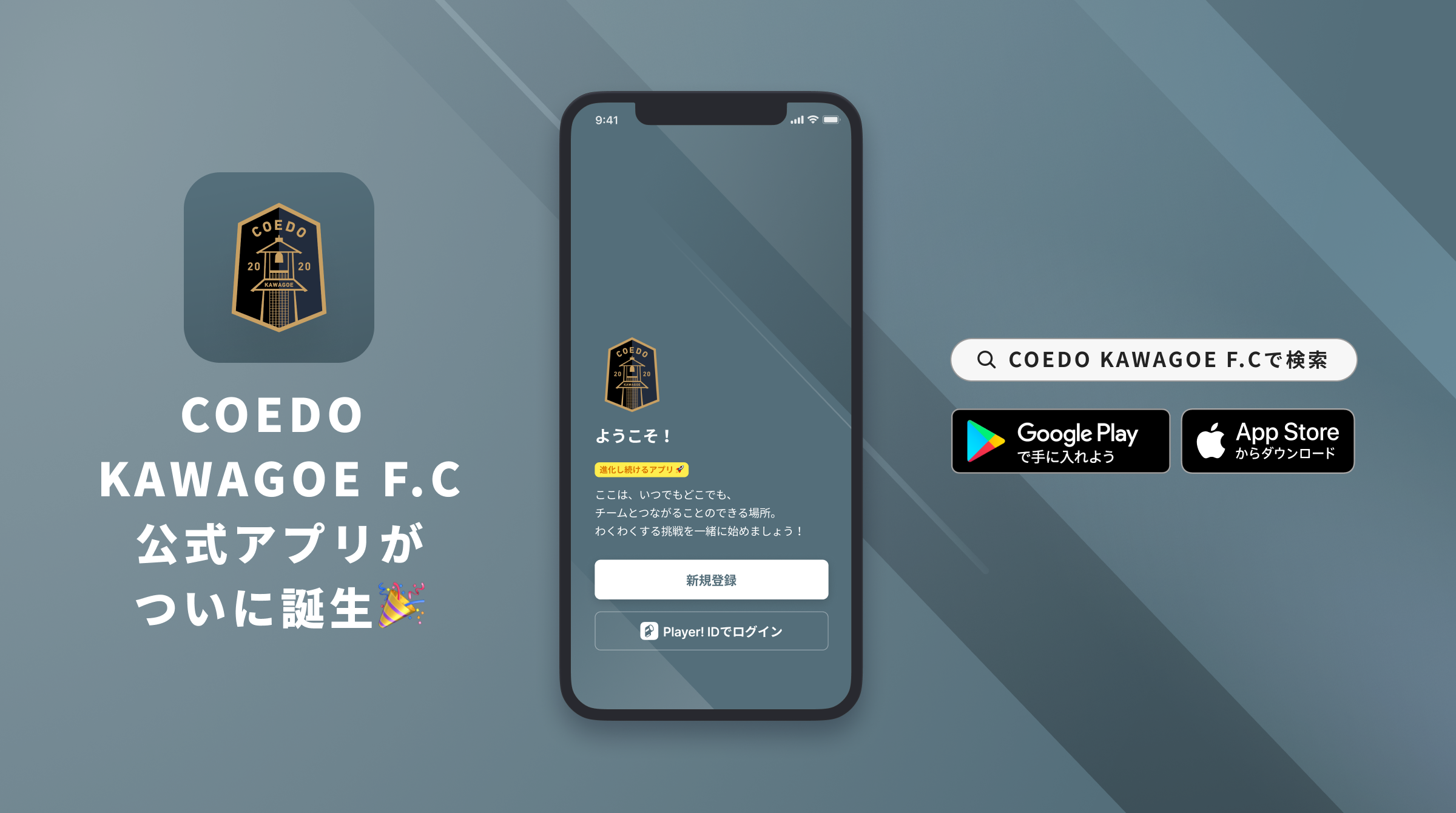この度、スポーツの速報や情報配信を通じたファンコミュニティサービスアプリ「Player!」を運営する株式会社ookamiの皆様との共同制作で、COEDO KAWAGOE F.C公式アプリをリリースすることになりました。