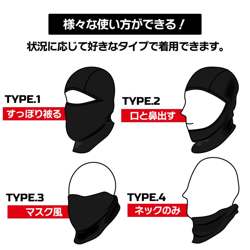 スポーツシーンや屋外作業に最適な春夏用バラクラバです。