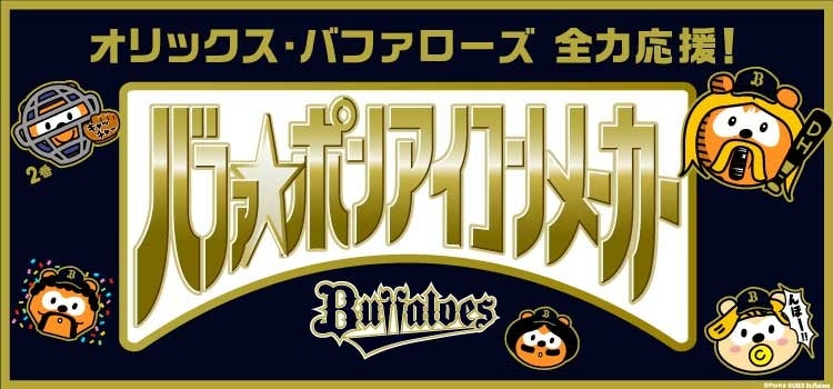 全力応援企画の第一弾として、2022年3月23日(水)~4月20日(水)、「バファ☆ポンアイコンメーカー」を期間限定で公開します。顔やヘアスタイル、グローブやバットなどのパーツを選択し、22,736通りの組み合わせの中からオリジナルのバファ☆ポンアイコンを作成いただけます。完成したアイコンは、SNSのプロフィール画像などにご利用可能です。