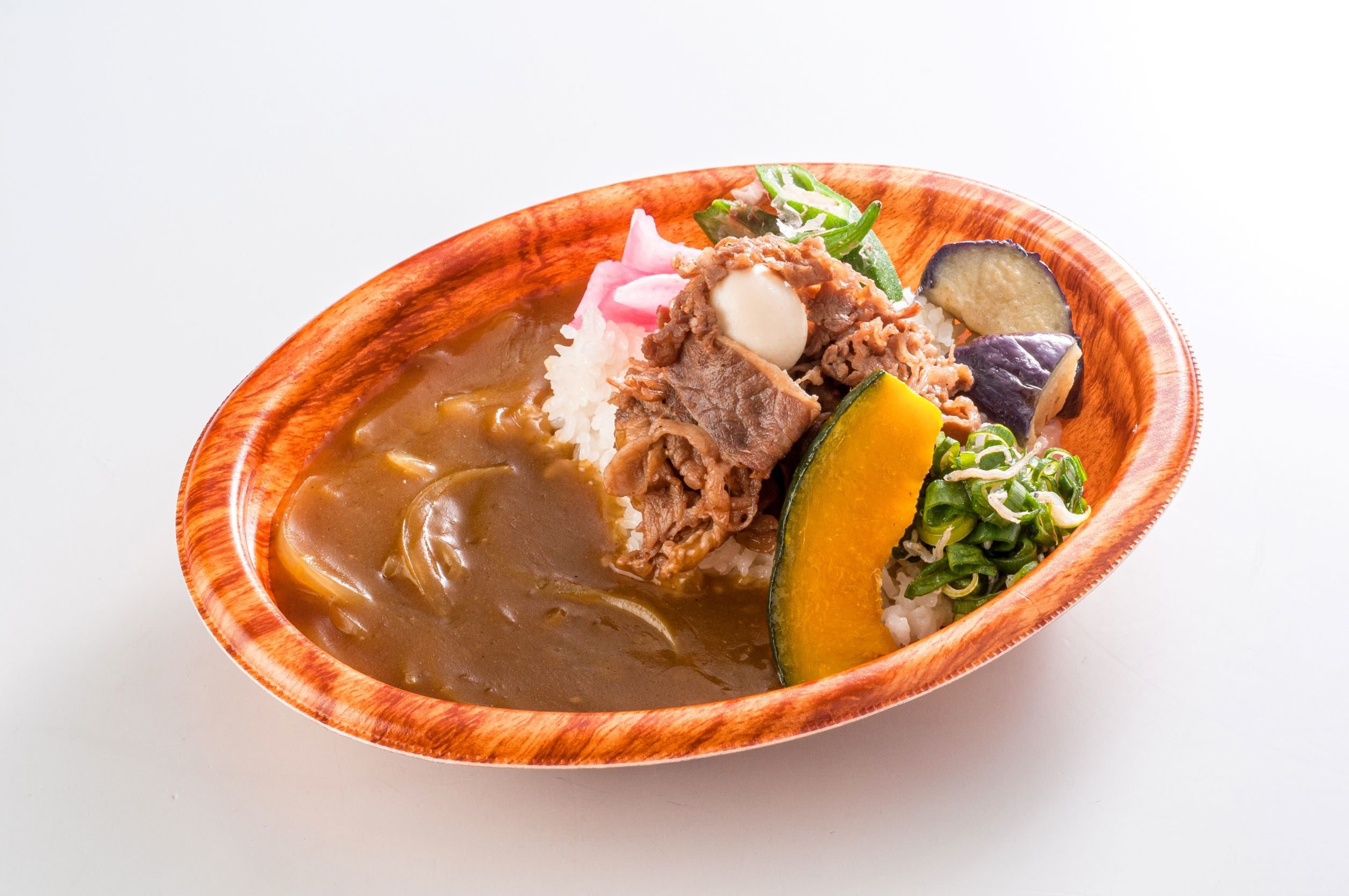 炭谷選手コメント:大好きな牛肉と、地元京都の“おばんざい”をイメージした具材 をカレーの上に載せました。