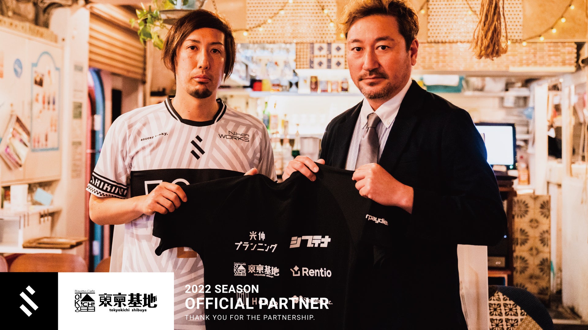 2022シーズンはオフィシャルパートナーとして、トップチームのトレーニングウェア・背中に「東京基地」のロゴを掲出します。