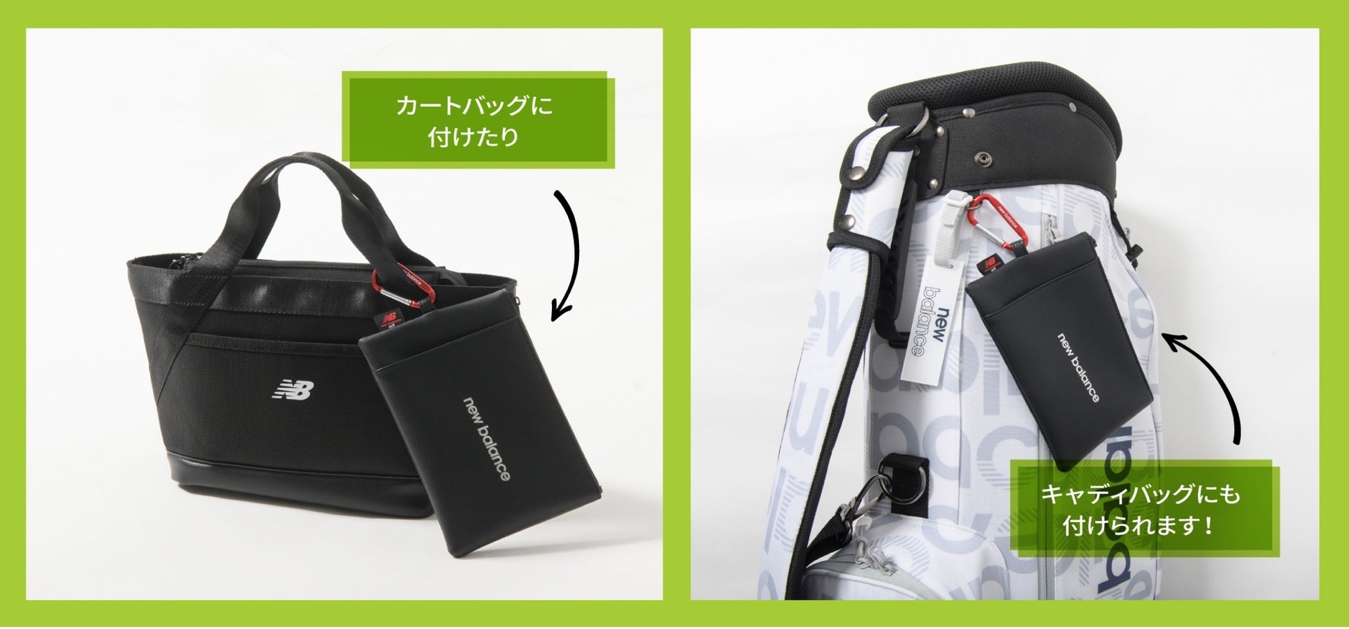 簡単に取り外しができるカラビナ付きマルチポーチはカートバッグやキャディバッグに取り付けるだけで小物を収納する便利さだけではなくオシャレなワンポイントにもなります。※数に限りがございます