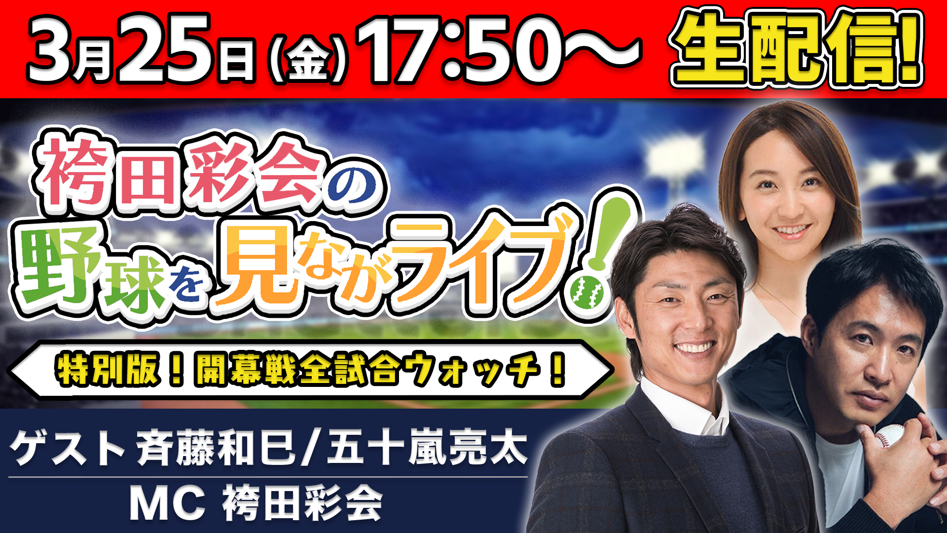 スポーツナビは、3月25日(金)17時50分より、2022年プロ野球開幕戦の試合速報とプロ野球OBの解説トークが同時に楽しめる番組「袴田彩会の野球を見ながライブ」を生配信します。