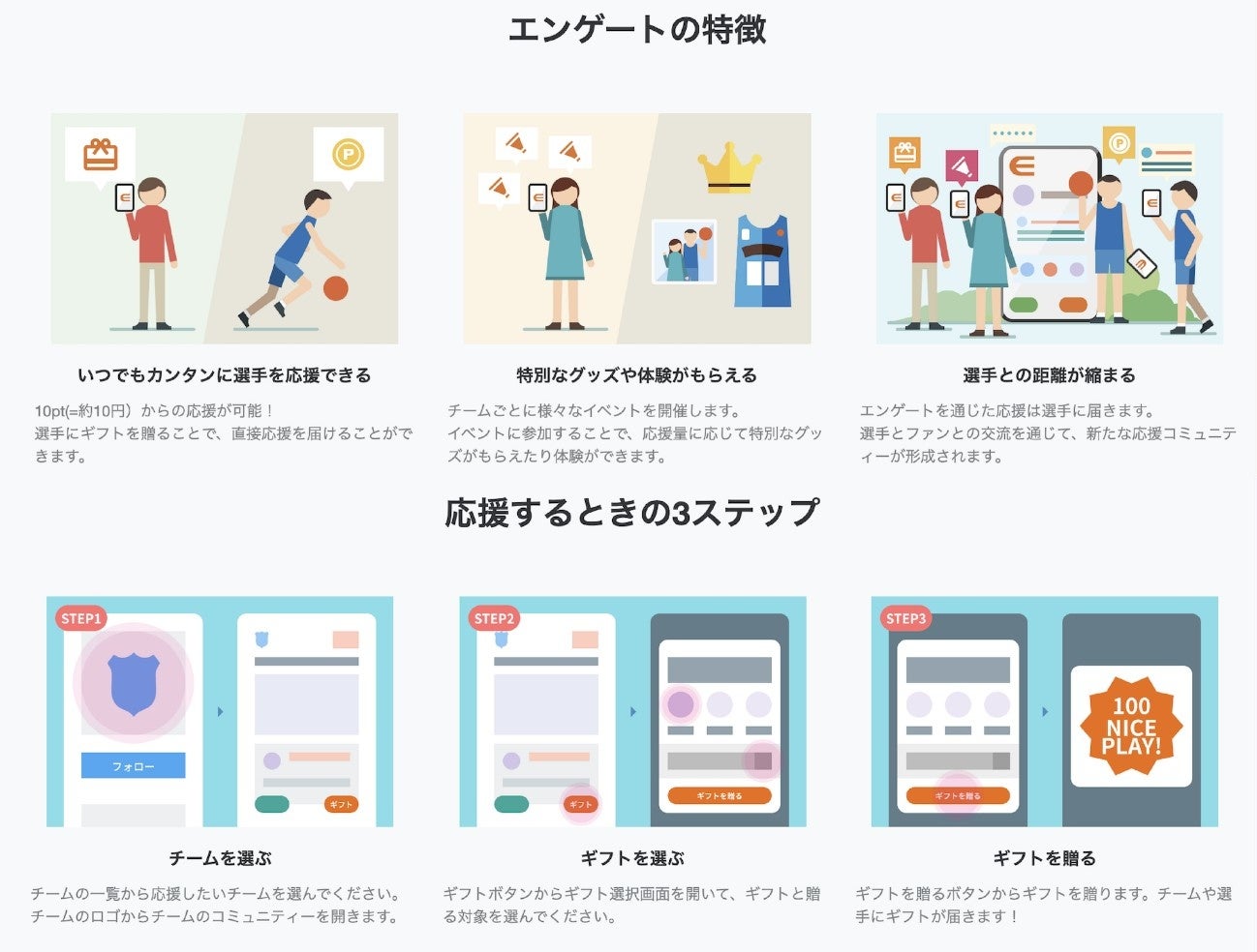 「スポーツの世界をテクノロジーが変える」をミッションに、スポーツチームとチームや選手を応援したい個人とつなぐサービスを展開しています。最新技術を取り入れたサービス開発と、チームサポート等のビジネスの両面を追求し、アスリートの夢と、アスリートを応援したい人のコミュニケーションの最大化を目指します。