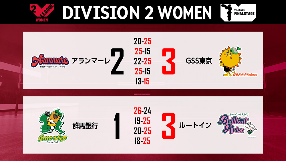 V・レギュラーラウンド1位から白星を奪い、V2女子初優勝となったルートイン 3月27日 対群馬銀行戦