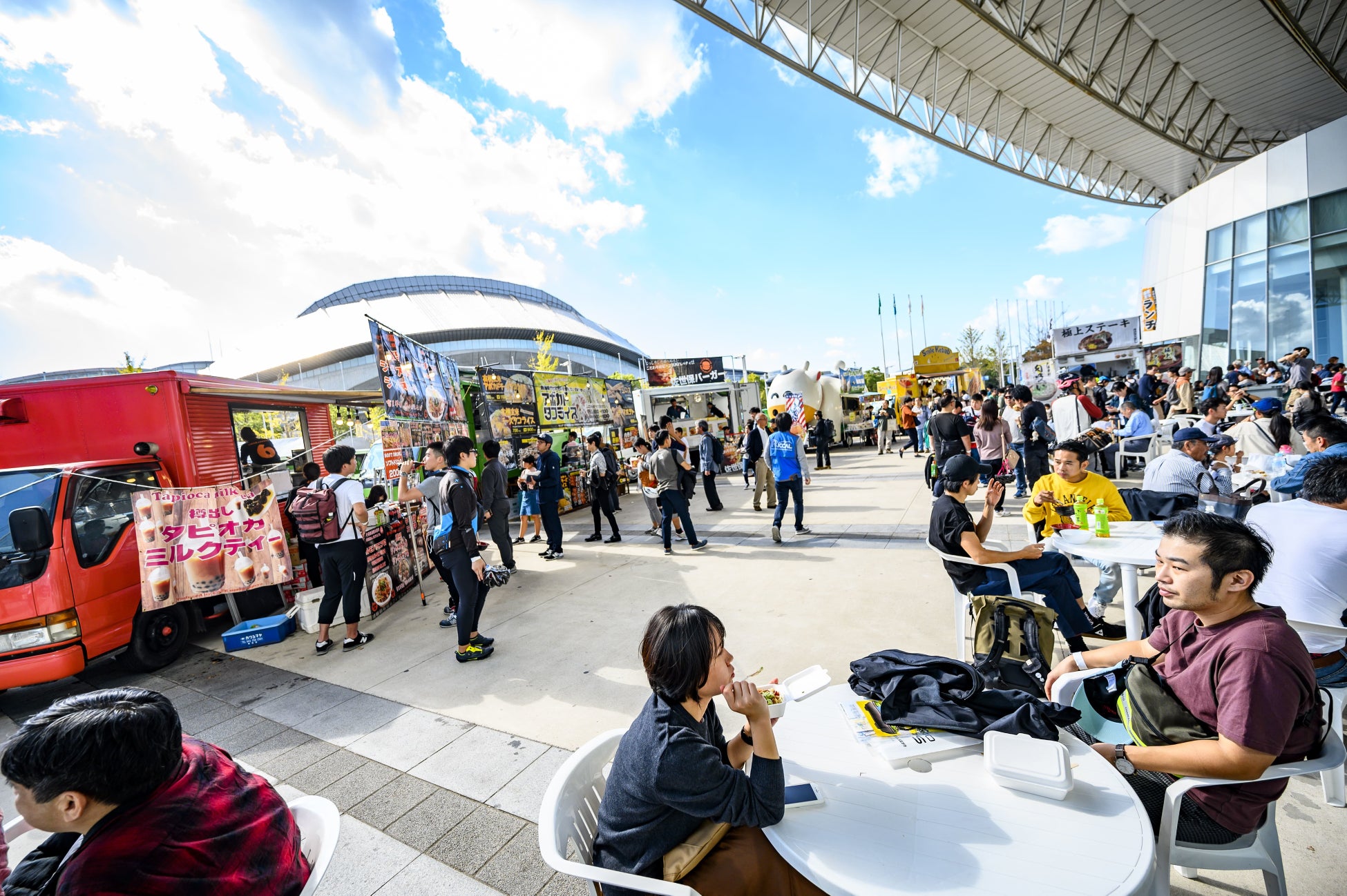 自転車で遊んだあとは腹ごしらえ!皆様のご期待に応える「食」のエリアももちろんあります。日本各地の人気キッチンカーが腕によりをかけて作ったグルメが大集合!おいしいごはんやスイーツを目的に会場へ遊びに行くのもあり!?