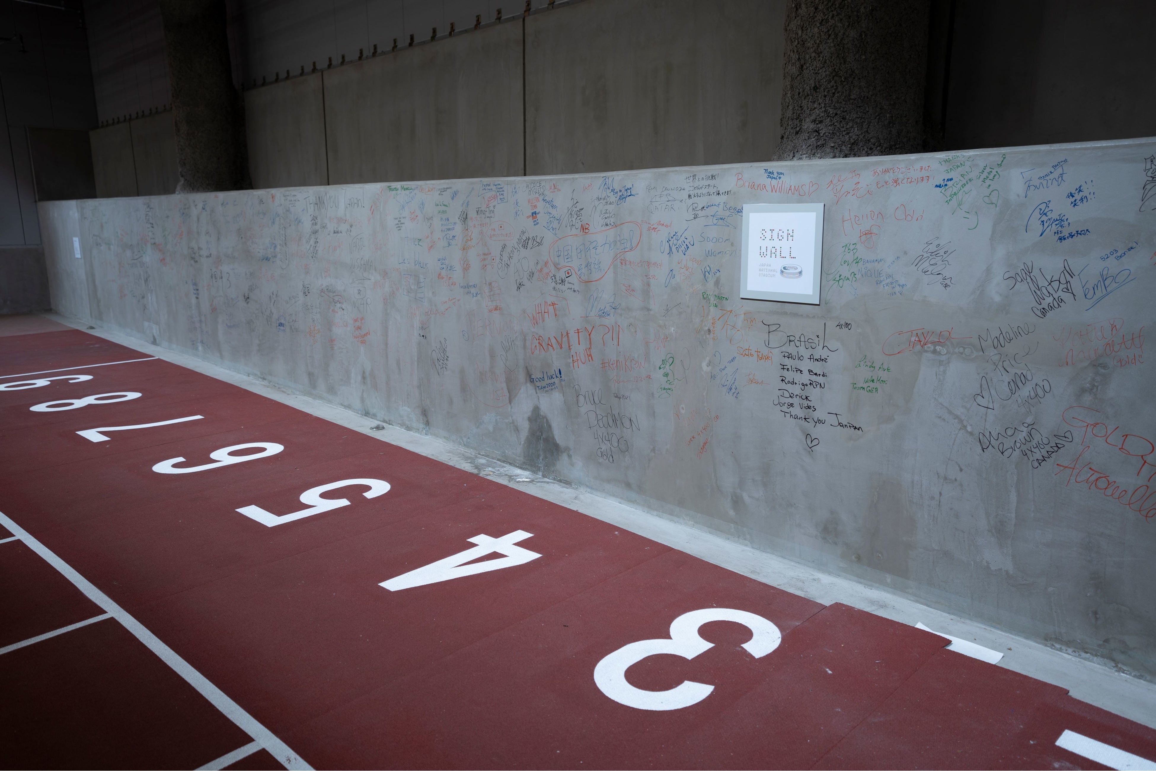 世界中から集まった大会参加選手の約300ものサインが書かれたサインウォールを公開。憧れの選手のサインと一緒に写真撮影をいただくことも可能です。