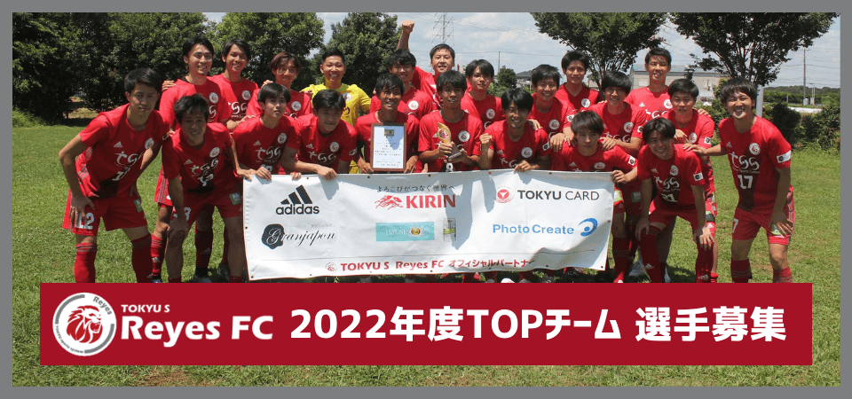 「東急SレイエスFC TOPチーム 2022年度選手募集」をいたします。興味のある選手は下記内容をご確認の上、フォームよりご連絡ください。