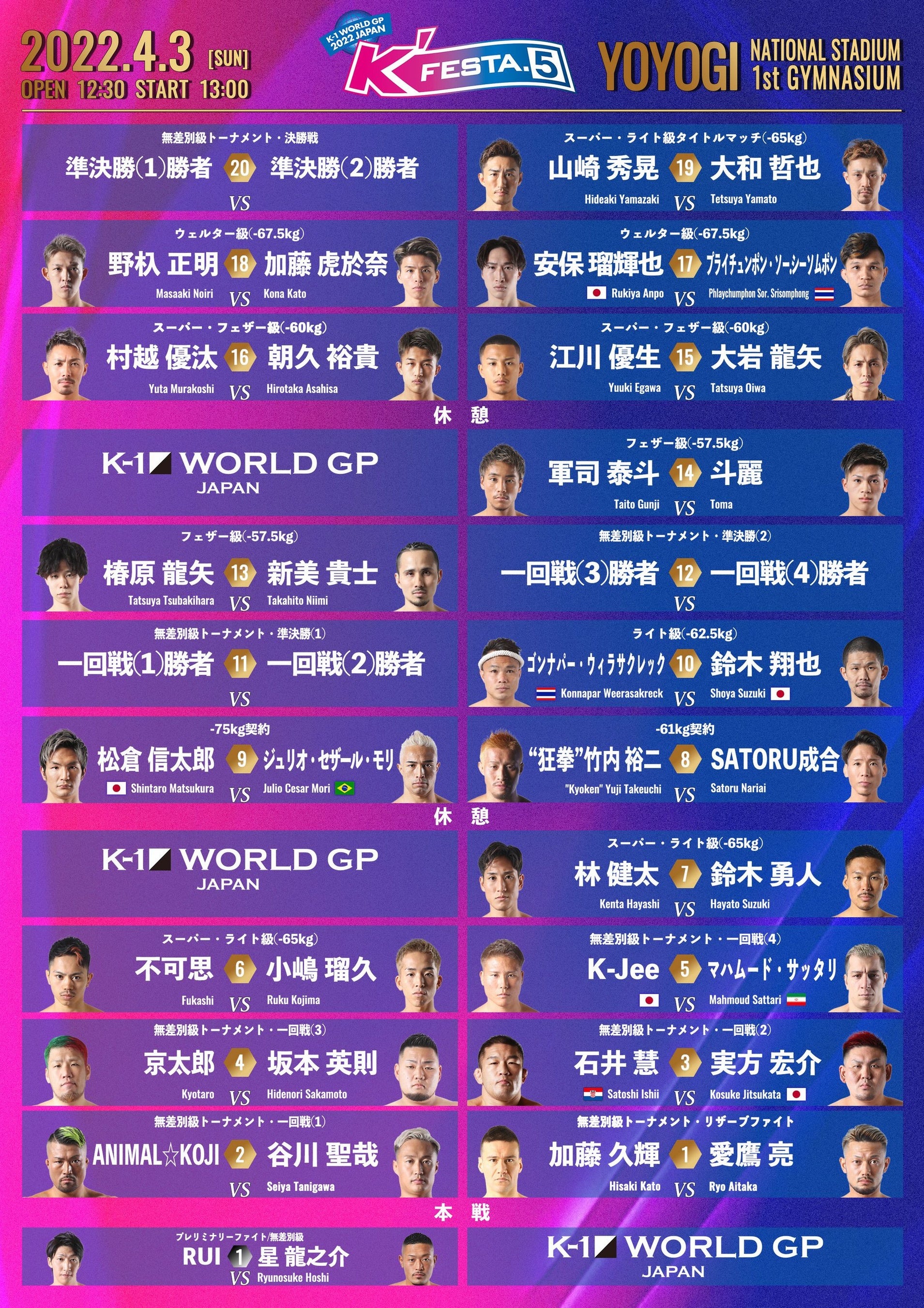 大会の対戦カードの詳細についてはこちら(https://www.k-1.co.jp/schedule/16575/)よりご覧いただけます。