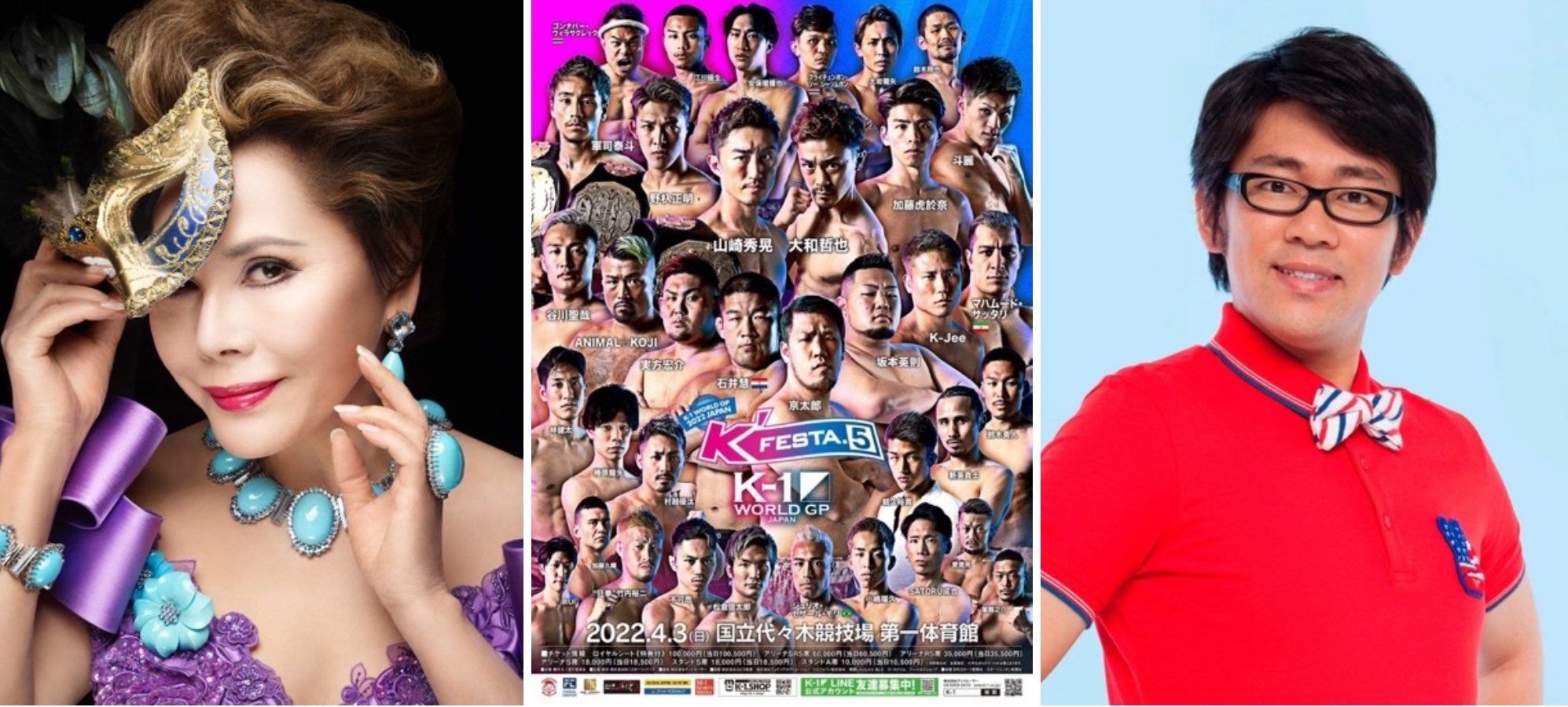 K-1/Krushの運営及びジム運営するK-1実行委員会(東京都渋谷区、 プロデューサー:中村拓己)は、2022年4月3日(日) 国立代々木競技場 第一体育館で開催する、K-1が年に一度開催している年間最大のビッグマッチ「K-1 WORLD GP 2022 JAPAN~K’FESTA.5~」大会を開催いたします。こちらのゲストに、御年82歳の「デヴィ夫人」が初登壇することが決定し、スペシャルラウンドガールとして会場を盛り上げていただくことが決定しました。更に「ビビる大木」さんもスペシャルリングアナとして初挑戦いただきます。