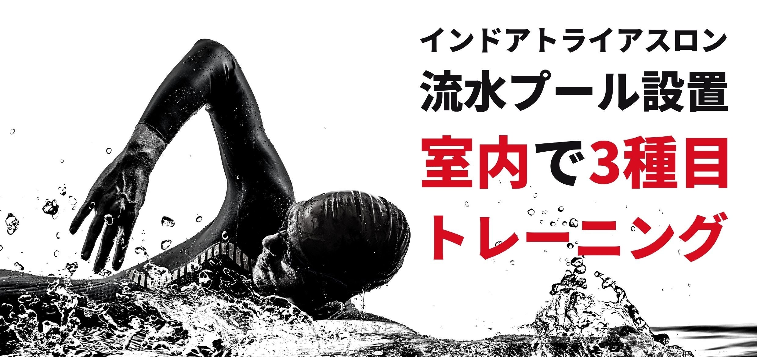今回、アーストライアスロンでは、これまでの大きな課題であった「流水プール」の導入を決め、同じフロア内にて3種目とも実施できる環境を整え、トランジションも思うがまま。本番の身体状態に近い環境でトレーニングが行える空間を用意しました。