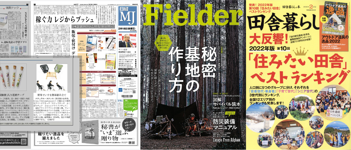 日経MJ、宝島社『田舎暮らしの本』、笠倉出版社『Fielder』、WEBメディア『e-Begin』、などメディアにも多数掲載されました。