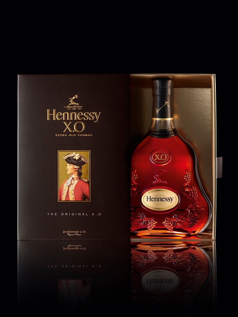 1870年、世界で初めて“eXtra Old”の名が与えられた伝説的なコニャック、ヘネシー X.O。その起源は、ヘネシー家がごく親しい家族や友人のために秘蔵してきた年代物のオー・ド・ヴィー(原酒)を、三代目当主モーリス・ヘネシーが特別にブレンドしたことに始まります。1947年には、ヘネシー家直系のジェラルド・ド・ジョオフルが、ブドウの房をモチーフとした現在のボトルをデザイン。コニャック地方上位4地区の畑から収穫されたブドウのみで造られた約100種類のオー・ド・ヴィーがブレンドされ、リッチでパワフル、かつ極めて滑らかなスタイルが特徴です。