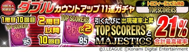 また、期間中の合計試合数に応じて「G85以上レギュラー2021 vol.2ガチャ券」などの報酬が獲得できるイベント「目指せ!1000万試合キャンペーン」や、「1000万人突破記念!トロフィーランブル」も開催。
