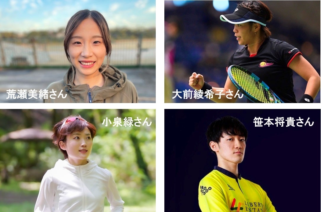 バレーボール:西田有志、小野寺太志、山本智大、髙野直哉、樋口裕希、大宅真樹、鶴田大樹、ウィルフレド・レオン、間橋香織、佐々木千紘/バスケットボール:富樫勇樹、河村勇輝、シェーファー アヴィ 幸樹、岡田侑大、保岡龍斗、津屋一球、伊藤駿、寺嶋恭之介、トレイ・ヤング、エレーナ・デレ・ダン/サッカー:畠中槙之輔、鵜木郁也、小林祐介、佐藤亮/テニス:綿貫陽介、日比野菜緒/マラソン:岩出玲亜/ゴルフ:穴井詩/バドミントン:松友美佐紀 他アスリート・チーム多数