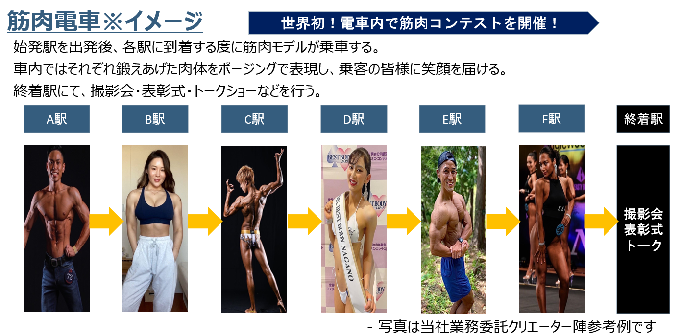鉄道会社の貸し切りプランを活用して、「筋肉電車を走らせる」ことです!