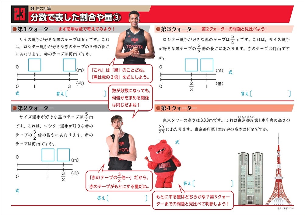 この度、バスケットボールおよび当クラブを題材とした小学校6年生向けの教材「アルバルク東京算数ドリル(2022 年度版)RED」が完成しました。このドリルは、スポーツの魅力を感じながら子供たちが楽しく算数を学ぶことができるように、バスケットボールやアルバルク東京の選手・チアリーダー・マスコット等に関連した問題で構成されており、2020年度より東京都内の小学校6年生に配布しております。