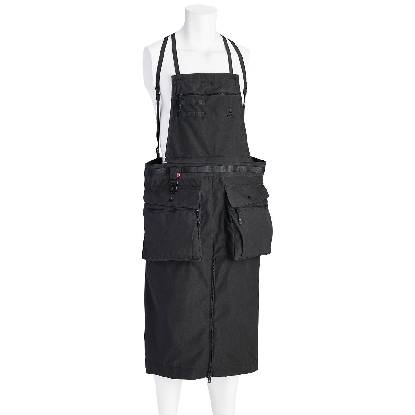 ハードな使用にも耐えうる高強度素材「ダイナモナス」を使用し、丈夫で火の粉にも強いロングサイズのアウトドアエプロン。胸部分のジッパー付ポケットは貴重品の管理に役立ち、腰の大容量ポケットは手がすっぽり入る大きさでギアの収納や取り出しもスムーズです。胸と腰部分にウェービングテープ、ハンマー等がさせるループがついており、キャンプや庭でのガーデニングにピッタリの一枚です。裏側の平ゴムに足を通せば、動いてもエプロンがずれることなく、裾中央部分のファスナーを上げることで更に動きやすくなります。また上部をファスナーで外すと前掛けタイプにもなります。