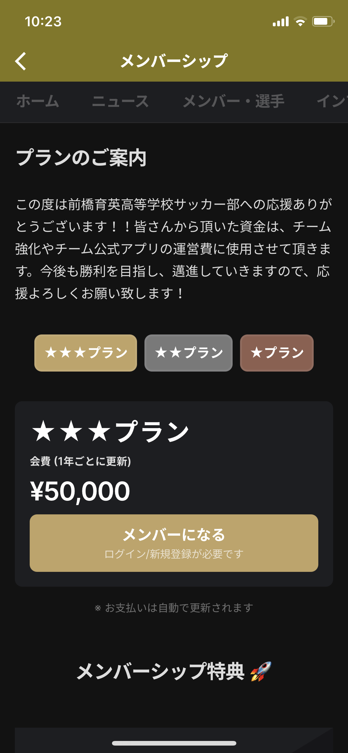 メンバーシップ機能からファンクラブ会員になって頂くと、チームから特別なグッズをお届けします!
